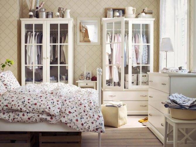 Здесь важную роль играет текстиль: над кроватью вешается элегантный балдахин, постель застилается покрывалом с воланами, рюшами или кружевными вставками. Сверху покрывала укладываются многочисленные декоративные подушки.